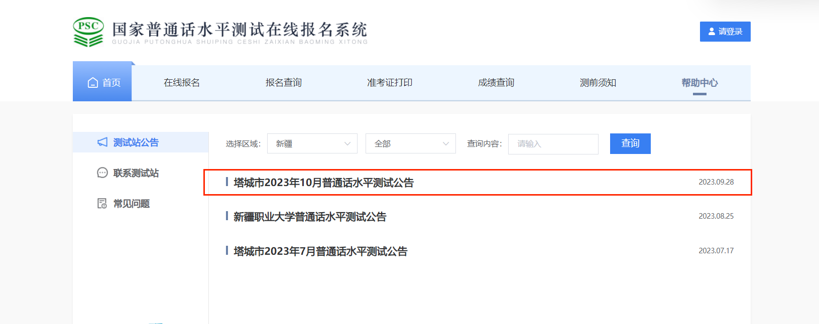 根據(jù)教育部頒布的《普通話水平測試管理規(guī)定》(教育部令51號)要求,為滿足廣大考生的測試需求,做好塔城市普通話水平測試工作,現(xiàn)將2023年10月面向社會普通話水平測試相關事宜公告如下: