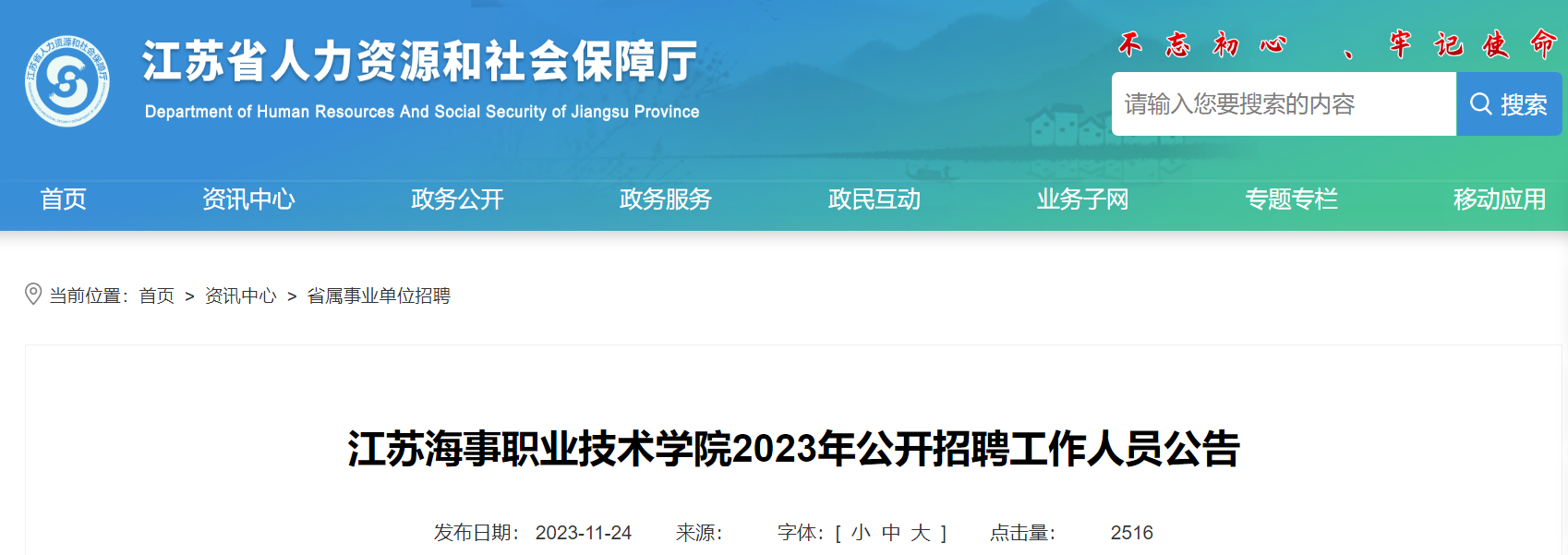 2023年江蘇海事職業(yè)技術(shù)學(xué)院公開招聘工作人員公告已發(fā)布,報(bào)名時(shí)間:2023年11月25日9∶00-2024年3月25日16∶00?,F(xiàn)將招聘公告原文發(fā)布如下: