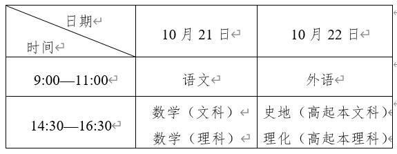 浙江臺州2023年成人高校招生統(tǒng)一考試日期為10月21日至22日。具體時間安排如下: