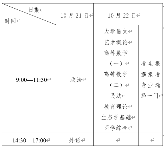3.工學(xué)、理學(xué)(生物科學(xué)類、地理科學(xué)類、心理學(xué)類等除外):政治、外語、高等數(shù)學(xué)(一)。