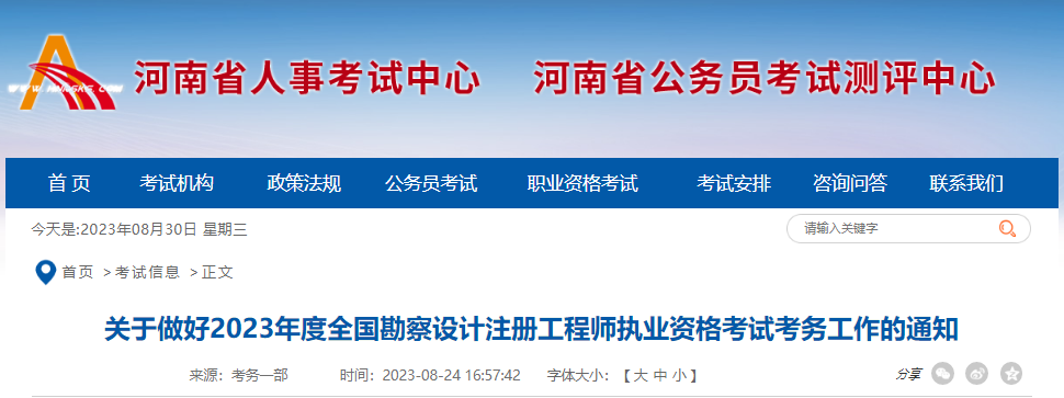 從河南省人事考試中心獲悉,《2023年河南勘察設(shè)計注冊工程師執(zhí)業(yè)資格考試報名通知》現(xiàn)已發(fā)布,2023年河南注冊化工工程師報名時間:8月30日-9月6日,考試時間:11月4日-5日,小編現(xiàn)將報考信息發(fā)布如下: