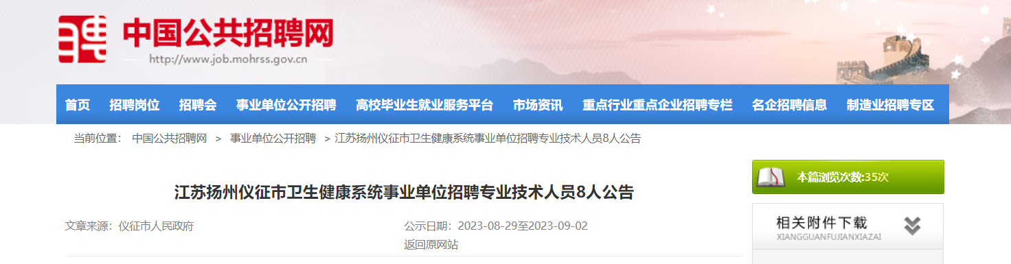 2023年江蘇省揚(yáng)州儀征市衛(wèi)生健康系統(tǒng)事業(yè)單位招聘專業(yè)技術(shù)人員8人。報(bào)名、照片上傳時(shí)間:2023年8月29日09∶00-9月2日16∶00;現(xiàn)將公告原文發(fā)布如下: