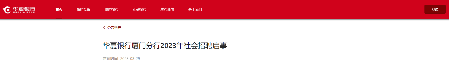 2023年華夏銀行福建廈門分行社會招聘啟事已發(fā)布,現(xiàn)將招聘公告發(fā)布如下: