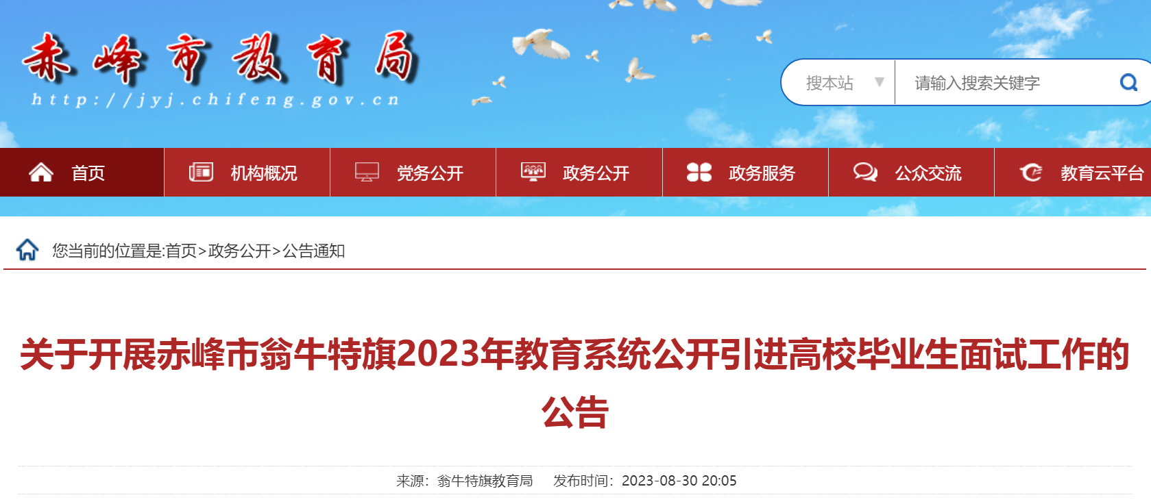 2023年內(nèi)蒙古赤峰市翁牛特旗教育系統(tǒng)公開引進高校畢業(yè)生面試工作公告已發(fā)布,面試時間:2023年9月3日。現(xiàn)將公告原文發(fā)布如下: