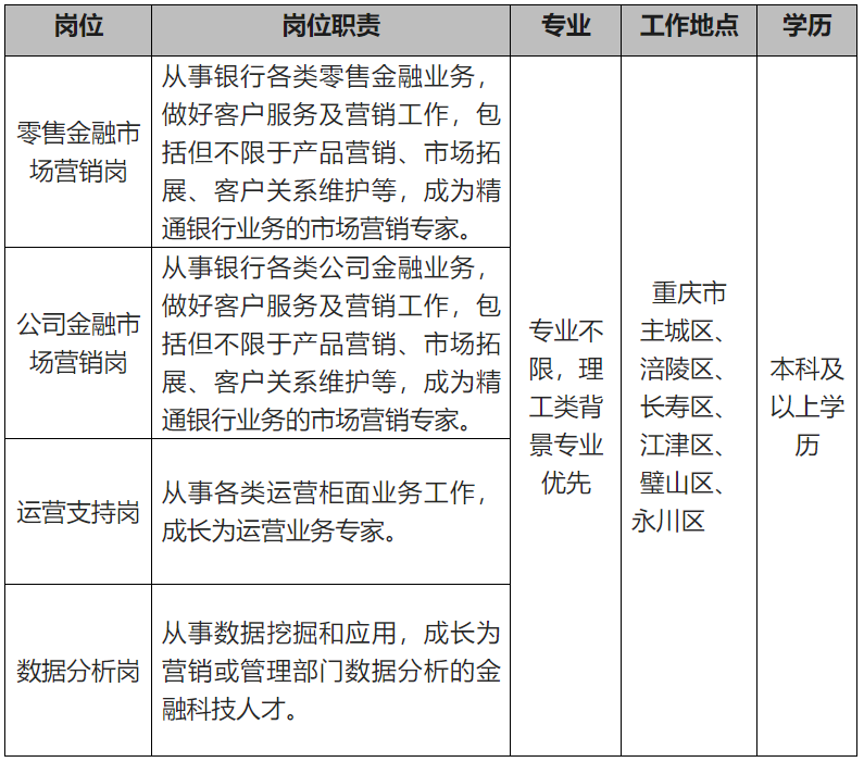我行熱忱邀請優(yōu)秀的畢業(yè)生加入招商銀行重慶分行。