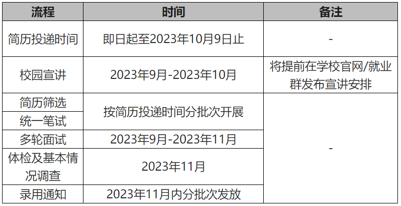 (一)簡歷投遞截止日期:2023年10月9日,根據(jù)簡歷投遞時間,分批開展相關(guān)招聘流程。