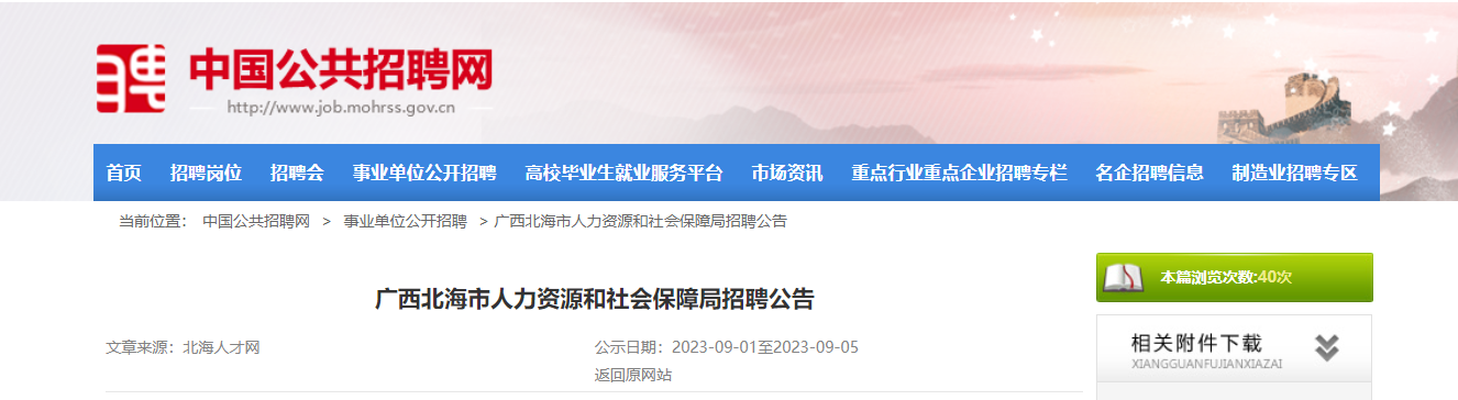 2023年廣西北海市人力資源和社會保障局招聘工作人員。報名時間2023年9月5日前?,F(xiàn)將公告原文發(fā)布如下: