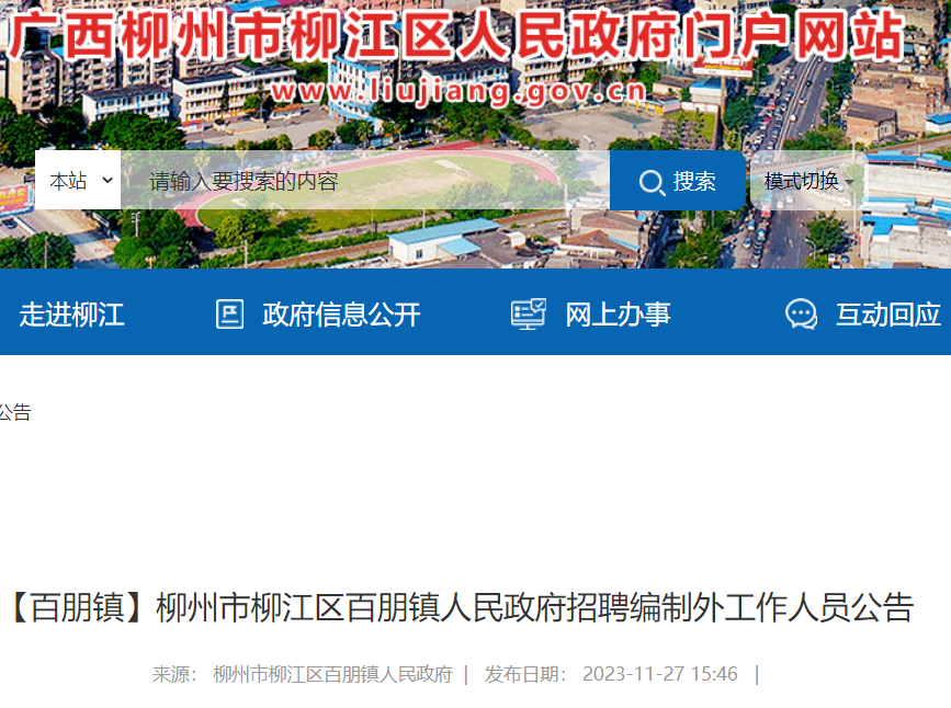 小編根據(jù)柳州市柳江區(qū)百朋鎮(zhèn)人民政府發(fā)布“柳州市柳江區(qū)百朋鎮(zhèn)人民政府招聘編制外工作人員公告”得知,2023廣西柳州市柳江區(qū)百朋鎮(zhèn)人民政府招聘編制外工作人員1人,報(bào)名時(shí)間11月27日至12月1日。