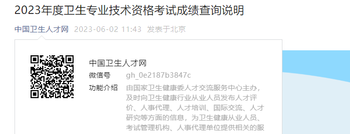 即日起,2023年度衛(wèi)生專業(yè)技術(shù)資格考試成績(jī)開放查詢,考生可登錄國(guó)家衛(wèi)生健康委人才交流服務(wù)中心網(wǎng)站進(jìn)行查詢。