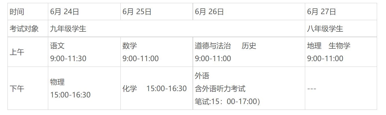 2023年廣西來賓中考筆試科目安排在6月24日、25日、26日、27日進(jìn)行