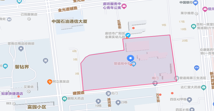 中國石油天然氣管道局中學(xué)考點平面圖: