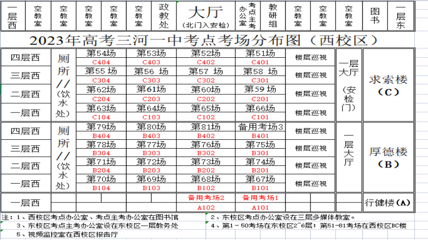 大廠回族自治縣大廠回民中學(xué)考場平面圖: