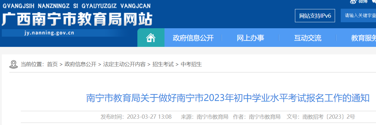 原文標題:南寧市教育局關(guān)于做好南寧市2023年初中學業(yè)水平考試報名工作的通知