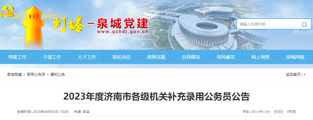 原文標題:2023年度濟南市各級機關補充錄用公務員公告