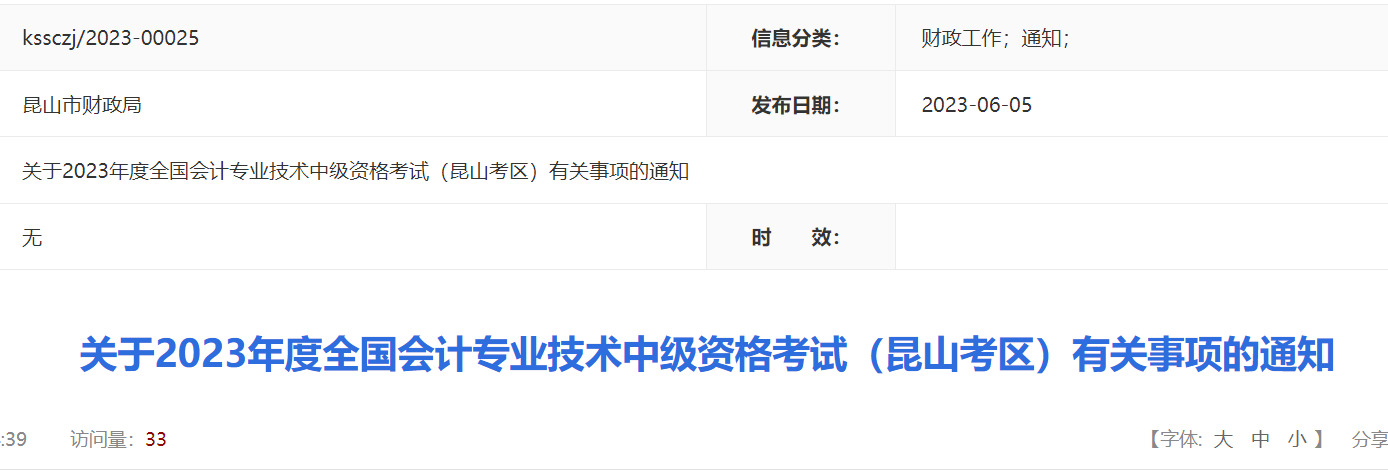 原文標(biāo)題:關(guān)于2023年度全國會計專業(yè)技術(shù)中級資格考試(昆山考區(qū))有關(guān)事項(xiàng)的通知