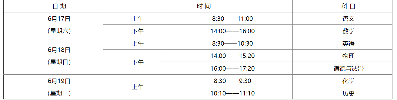 小編根據(jù)渭南市教育局發(fā)布”渭南市教育局關(guān)于做好2023年全市初中學業(yè)水平考試和普通高中招生工作的通知“得知,2023年陜西渭南中考時間為6月17日-6月19日,考試科目如下: