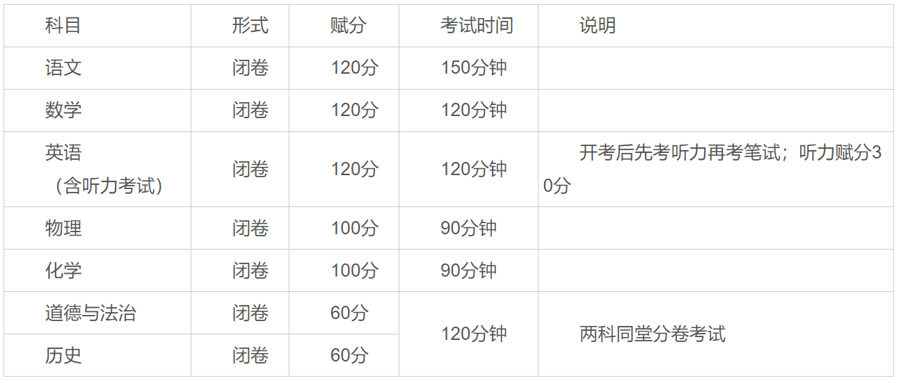 中考由市教育局統(tǒng)一組織實(shí)施,成績不以分?jǐn)?shù)張榜公布和排列名次,考生的各科成績和總成績以等第形式呈現(xiàn),不呈現(xiàn)原始分?jǐn)?shù)。