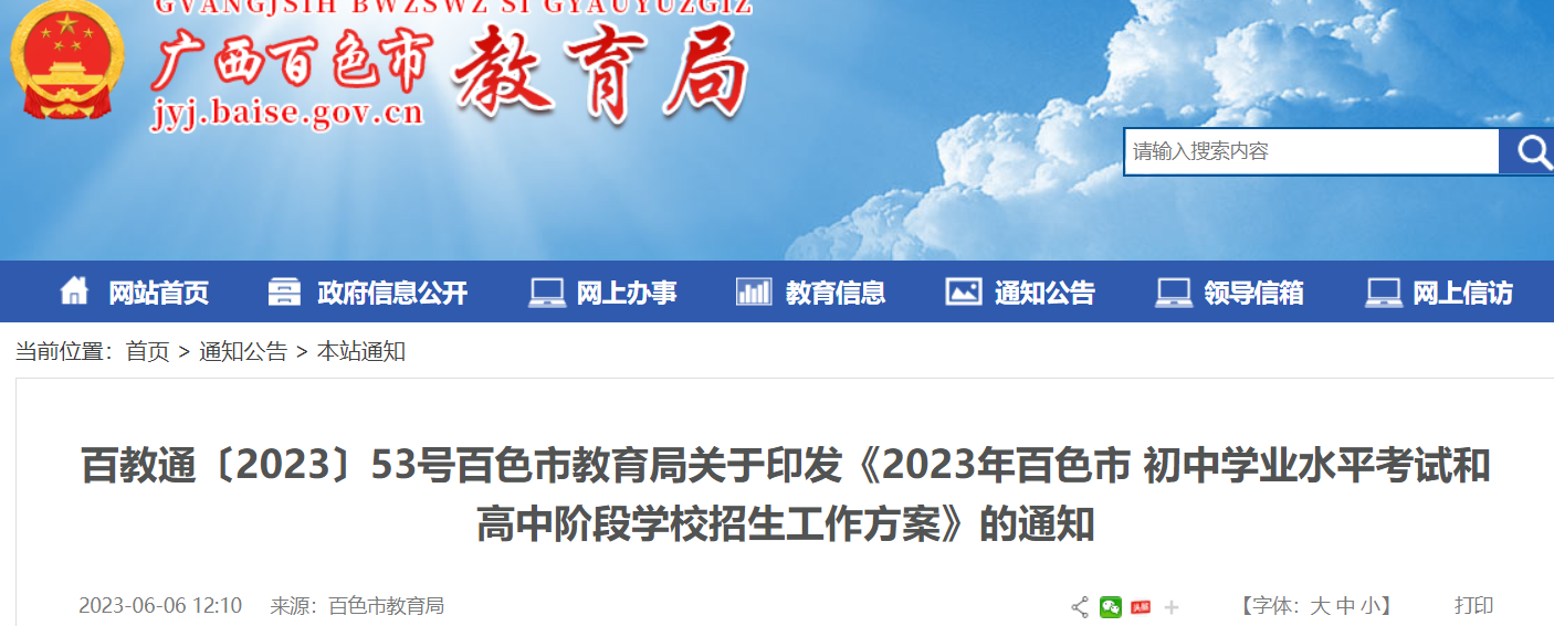 原文標(biāo)題:百色市教育局關(guān)于印發(fā)《2023年百色市 初中學(xué)業(yè)水平考試和高中階段學(xué)校招生工作方案》的通知