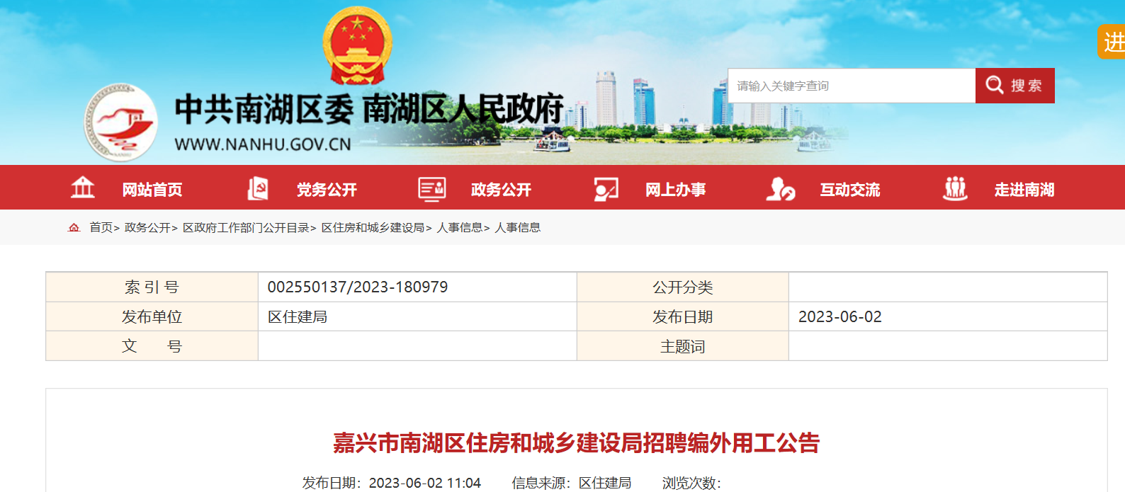 2023年浙江省嘉興市南湖區(qū)住房和城鄉(xiāng)建設(shè)局招聘編外用工1人。報(bào)名時(shí)間2023年6月11日下午5點(diǎn)前?,F(xiàn)將公告原文發(fā)布如下: