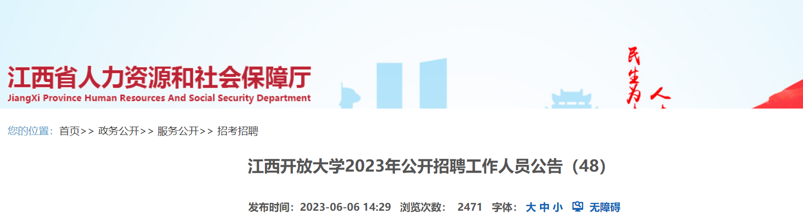 招聘過程中的所有相關(guān)信息及公告均通過江西開放大學(xué)網(wǎng)站“校務(wù)公告”欄目予以公示,不通過電話逐一聯(lián)系,請報考人員及時關(guān)注。