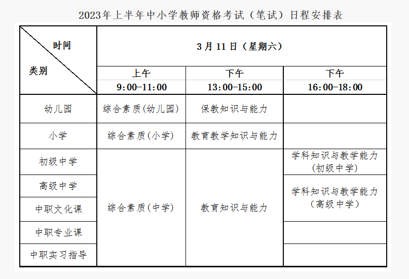 2023年上半年中小學(xué)教師資格考試(筆試)日程安排表
