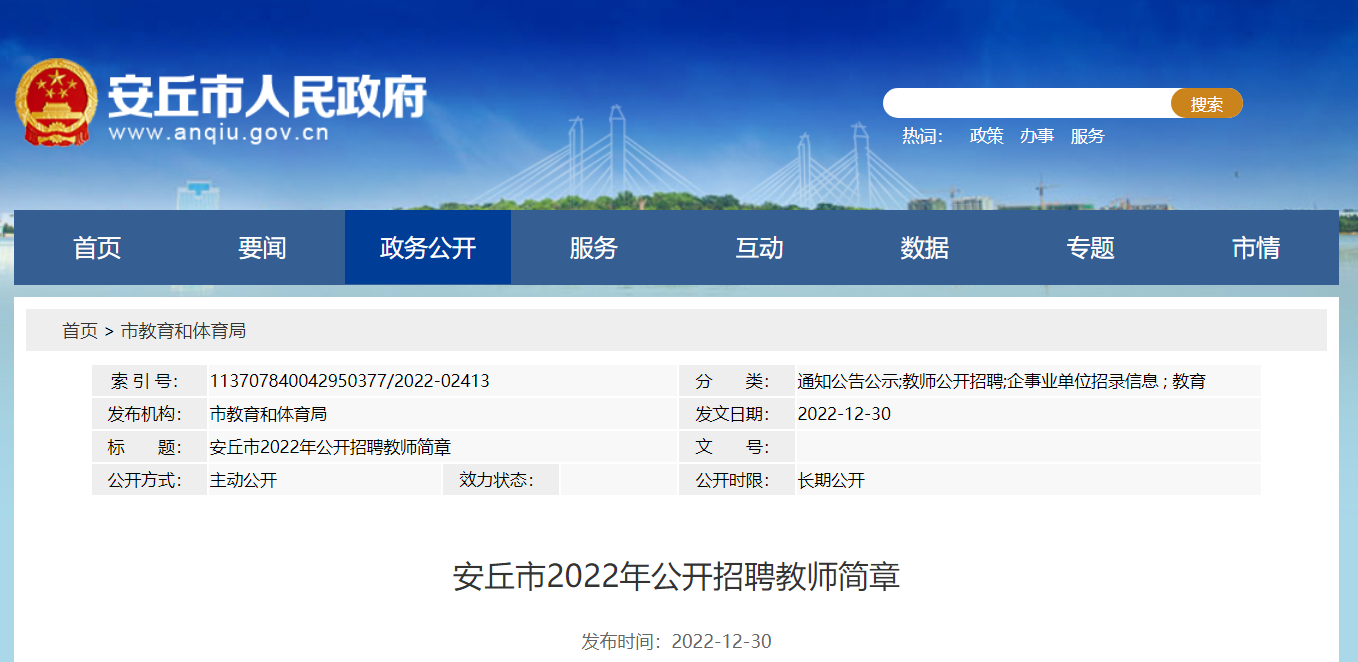 2022年山東濰坊安丘市招聘教師14人,報名時間:2023年1月12日9:00—1月14日16:00,現(xiàn)將招聘公告原文發(fā)布如下: