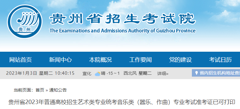 貴州2023年藝考音樂(lè)類(器樂(lè)、作曲)專業(yè)考試準(zhǔn)考證打印入口開(kāi)通 點(diǎn)擊進(jìn)入