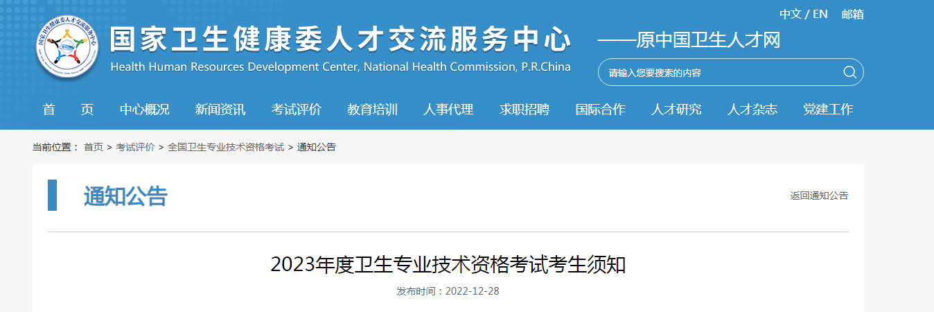 從國家衛(wèi)生健康委人才交流服務中心發(fā)布的《2023年衛(wèi)生專業(yè)技術資格考試考生須知》和《2023年衛(wèi)生專業(yè)技術資格考試有關問題的通知》得知,2023年中藥學職稱考試報名時間、條件及入口已公布,網(wǎng)上報名時間為2022年12月30日-2023年1月12日,具體詳情如下: