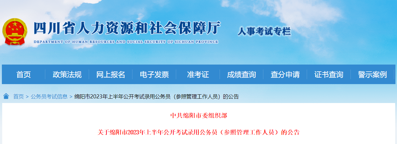 原文標(biāo)題:關(guān)于綿陽(yáng)市2023年上半年公開(kāi)考試錄用公務(wù)員(參照管理工作人員)的公告