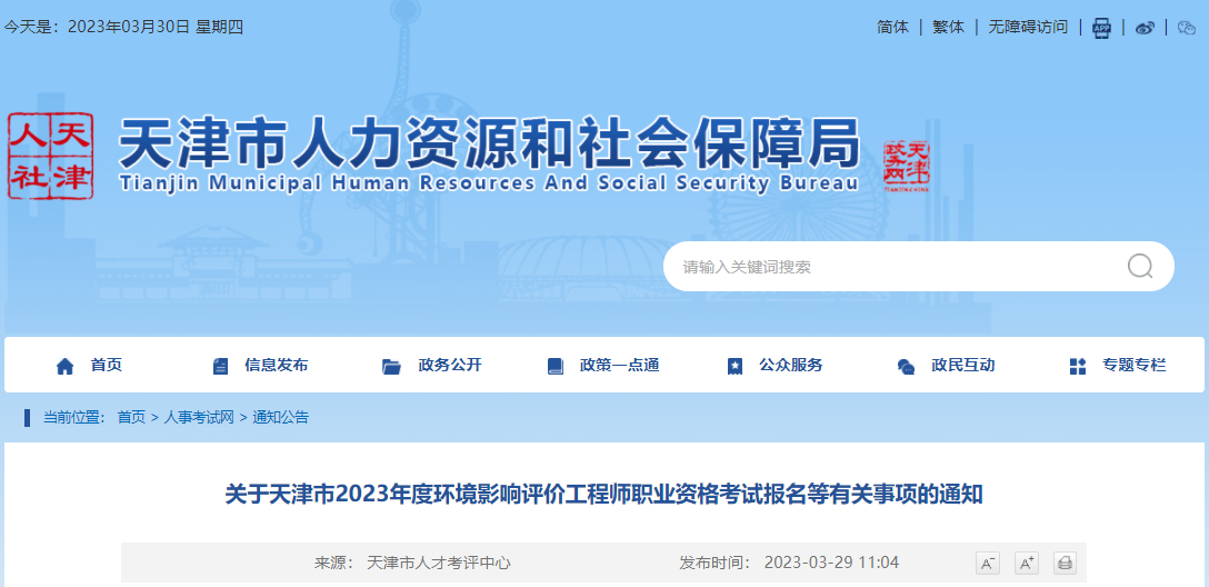 原文標(biāo)題:關(guān)于天津市2023年度環(huán)境影響評(píng)價(jià)工程師職業(yè)資格考試報(bào)名等有關(guān)事項(xiàng)的通知