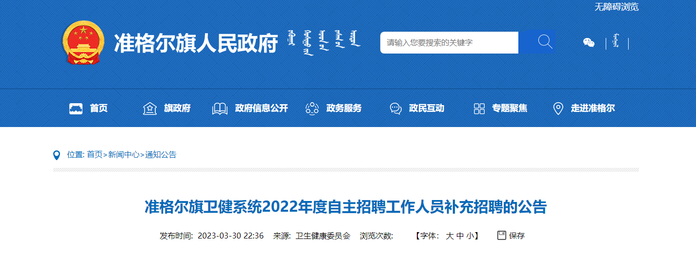 原文標(biāo)題:準(zhǔn)格爾旗衛(wèi)健系統(tǒng)2022年度自主招聘工作人員補(bǔ)充招聘的公告