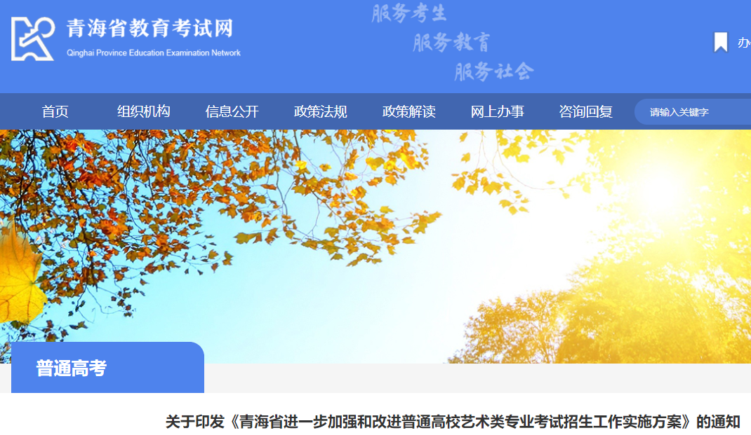 藝術(shù)高考頻道從青海省教育考試網(wǎng)了解到,青海普通高校藝術(shù)類專業(yè)考試招生工作實施方案已公布,具體如下: