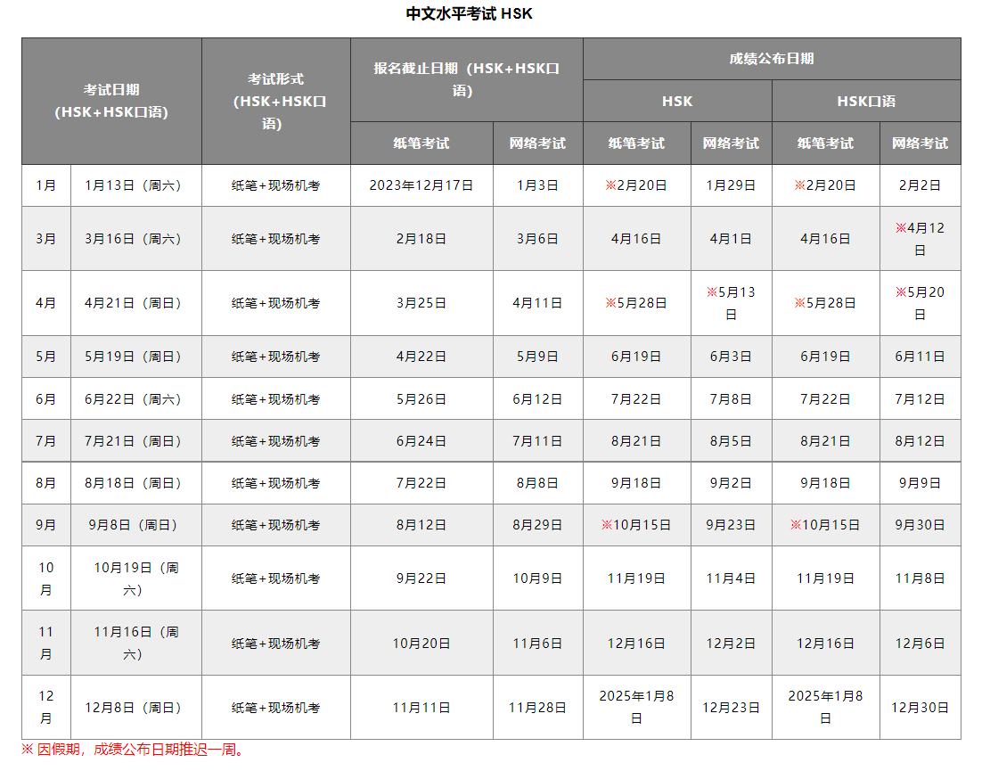 2024年遼寧漢語水平HSK考試時(shí)間: