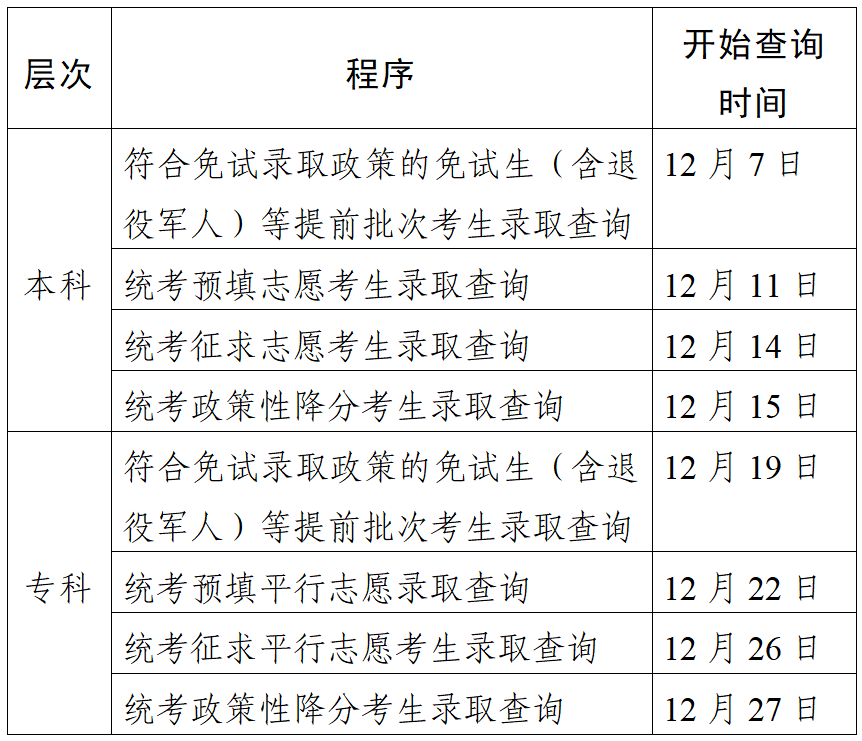 江蘇省2023年成人高校招生錄取工作已于12月5日開始,考生可在以下時間后登錄江蘇省教育考試院門戶網(wǎng)站(www.jseea.cn)“查詢中心”(https://cxzx.jseea.cn/)查詢錄取結(jié)果。
