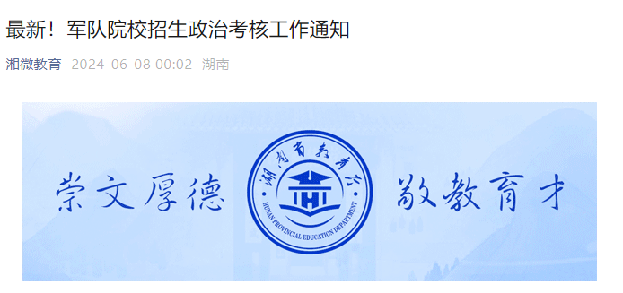 從湘微教育了解到,湖南2024年軍隊院校招收普通高中畢業(yè)生政治考核工作已公布,相關(guān)事宜詳情如下: