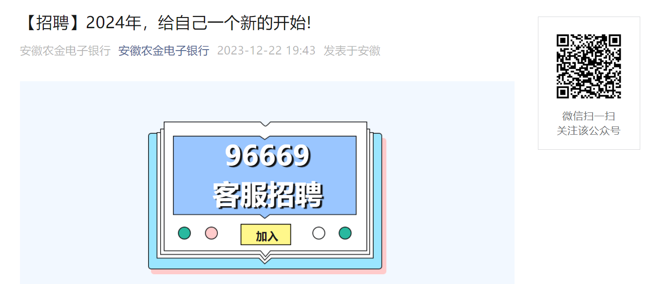 2024年安徽農(nóng)信社客服人員招聘公告已發(fā)布,現(xiàn)將招聘公告原文發(fā)布如下: