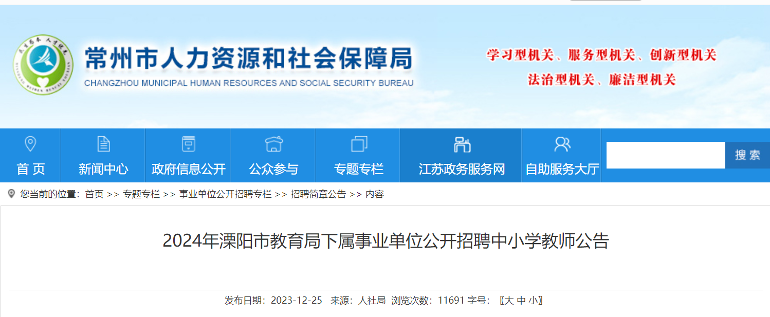 2024年江蘇常州溧陽市教育局下屬事業(yè)單位公開招聘中小學(xué)教師公告已發(fā)布,報(bào)名時(shí)間:2024年1月2日9:00—2024年1月4日16:00。現(xiàn)將招聘公告原文發(fā)布如下: