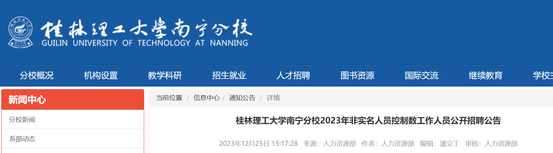 1.桂林理工大學(xué)南寧分校2023年公開(kāi)招聘非實(shí)名人員控制數(shù)工作人員崗位信息表