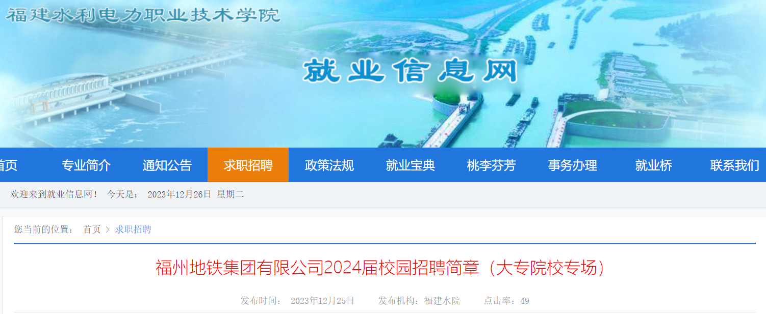 福建福州地鐵集團有限公司2024屆校園招聘簡章(大專院校專場)已發(fā)布,報名時間:2023年12月25日至12月31日24時?,F(xiàn)將招聘公告原文發(fā)布如下: