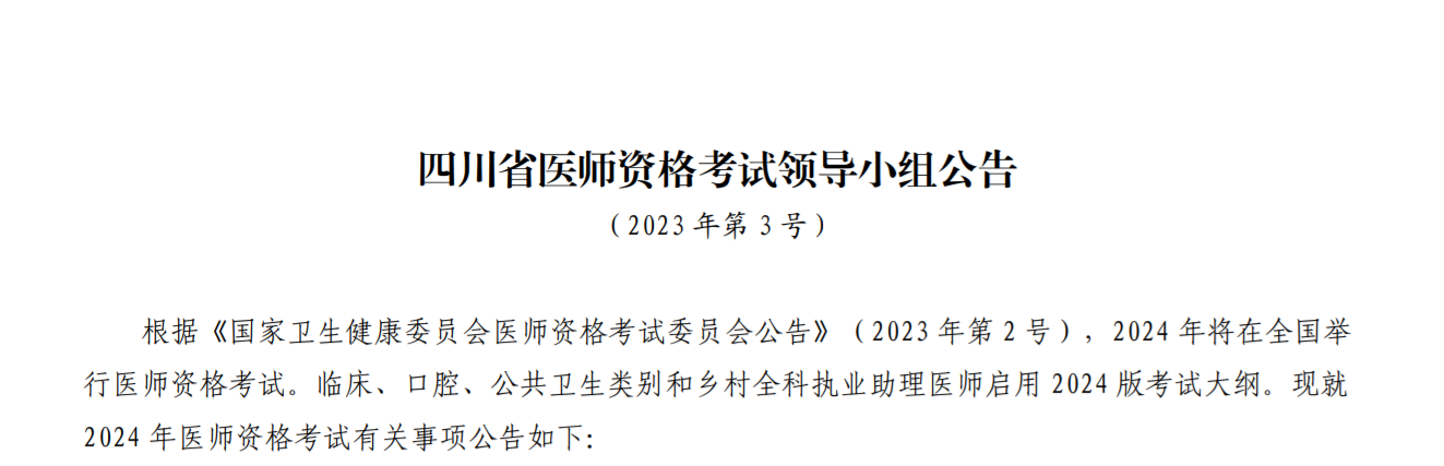 從四川省衛(wèi)生健康委員會發(fā)布的《2024年四川醫(yī)師資格考試公告》得知,2024年四川醫(yī)師實踐技能考試報名時間、條件、流程及入口已公布,2024年1月22日至2024年2月4日24時網(wǎng)上報名,具體詳情如下: