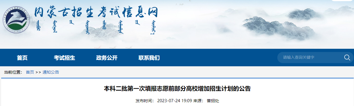 從內(nèi)蒙古招生考試信息網(wǎng)了解到,2023年內(nèi)蒙古本科二批第一次填報(bào)志愿前部分高校增加招生計(jì)劃的公告已公布,詳細(xì)內(nèi)容如下: