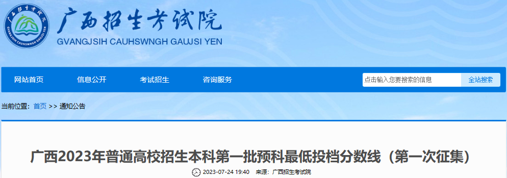 從廣西招生考試院了解到,廣西2023年高考招生本科第一批預(yù)科最低投檔分?jǐn)?shù)線(第一次征集)已公布,詳細(xì)內(nèi)容如下: