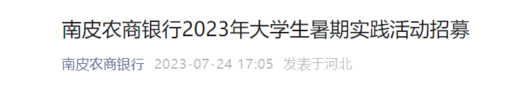 2023年河北南皮農(nóng)商銀行大學生暑期實踐活動招募24人,報名時間:2023年7月28日截止,現(xiàn)將招聘公告發(fā)布如下: