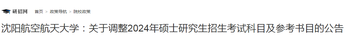 考研頻道從研招網(wǎng)了解到,沈陽(yáng)航空航天大學(xué)調(diào)整2024年碩士研究生招生考試科目及參考書目的公告已發(fā)布。詳情如下: