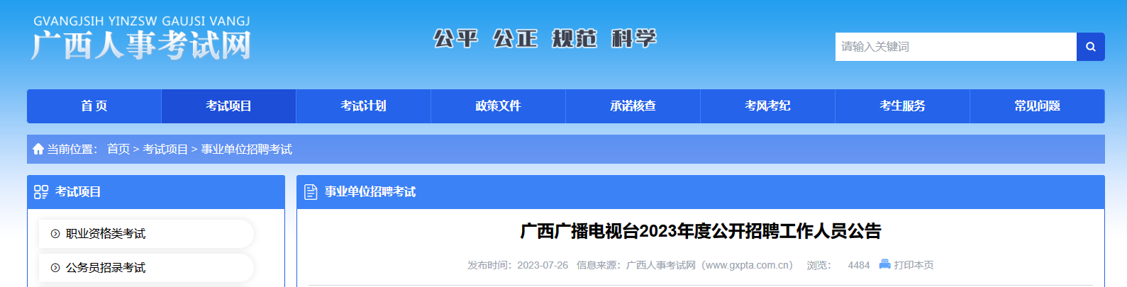 2023年廣西廣播電視臺招聘工作人員。報名時間:2023年7月27日至2023年8月4日止,逾期不再受理?,F(xiàn)將公告原文發(fā)布如下: