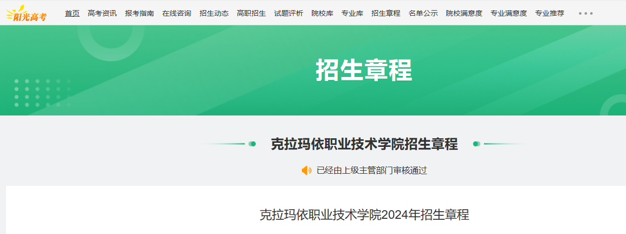 從陽光高考平臺獲悉,2024年新疆克拉瑪依職業(yè)技術(shù)學院招生章程已發(fā)布,提醒各位考生認證閱讀招生章程,選擇適合的專業(yè)報考。