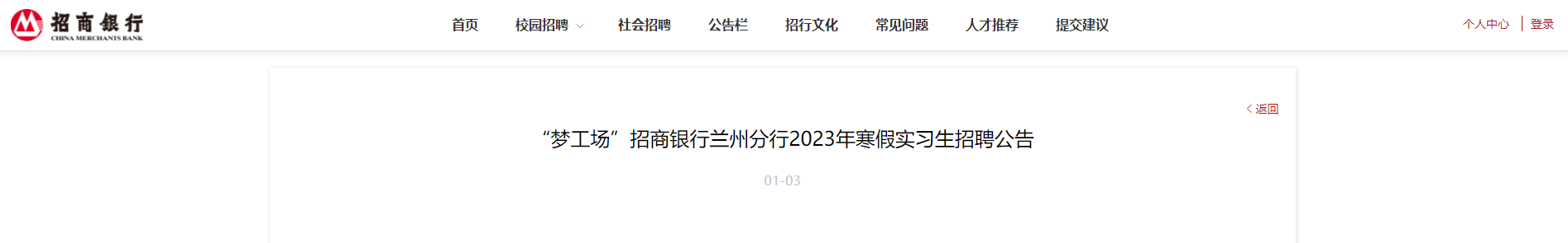 原文標(biāo)題:“夢工場”招商銀行蘭州分行2023年寒假實(shí)習(xí)生招聘公告