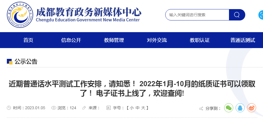 原文標(biāo)題:近期普通話水平測試工作安排,請知悉! 2022年1月-10月的紙質(zhì)證書可以領(lǐng)取了! 電子證書上線了,歡迎查閱!