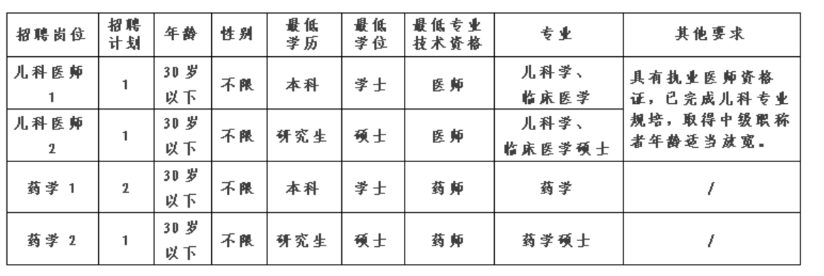 根據(jù)醫(yī)院發(fā)展需要,現(xiàn)面向社會招聘工作人員若干名,具體崗位條件如下:一、崗位及條件: