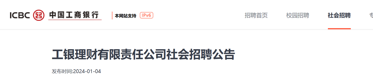 2024工銀理財有限責(zé)任公司社會招聘公告已發(fā)布,報名時間:從即日起至2024年1月31日,現(xiàn)將招聘公告原文發(fā)布如下: